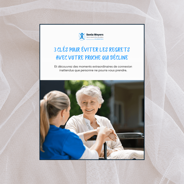 Je vois dans mon cabinet trop de personnes qui ont des regrets une fois que c’est trop tard. C’est pour ça que j’ai créé le guide gratuit « 3 clés pour éviter les regrets avec votre proche qui décline ».
