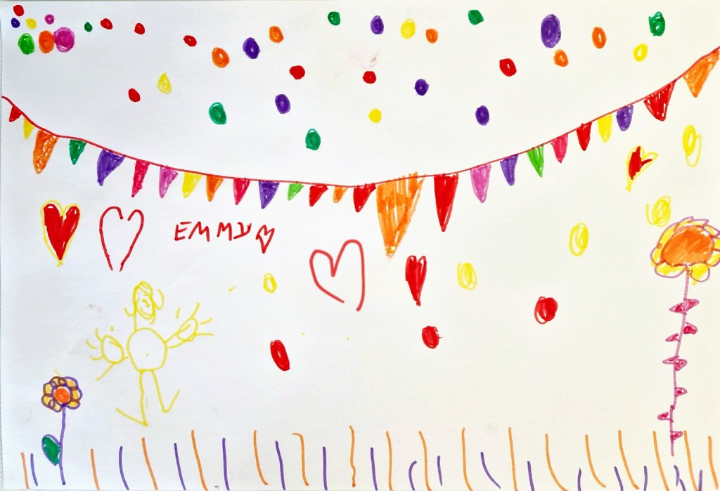 J’expose ici les dessins que m’offrent mes jeunes patients, et parfois leurs parents. Ils ont souvent un thème de bonheur, d’arcs en ciel, de coeur et d’amour,